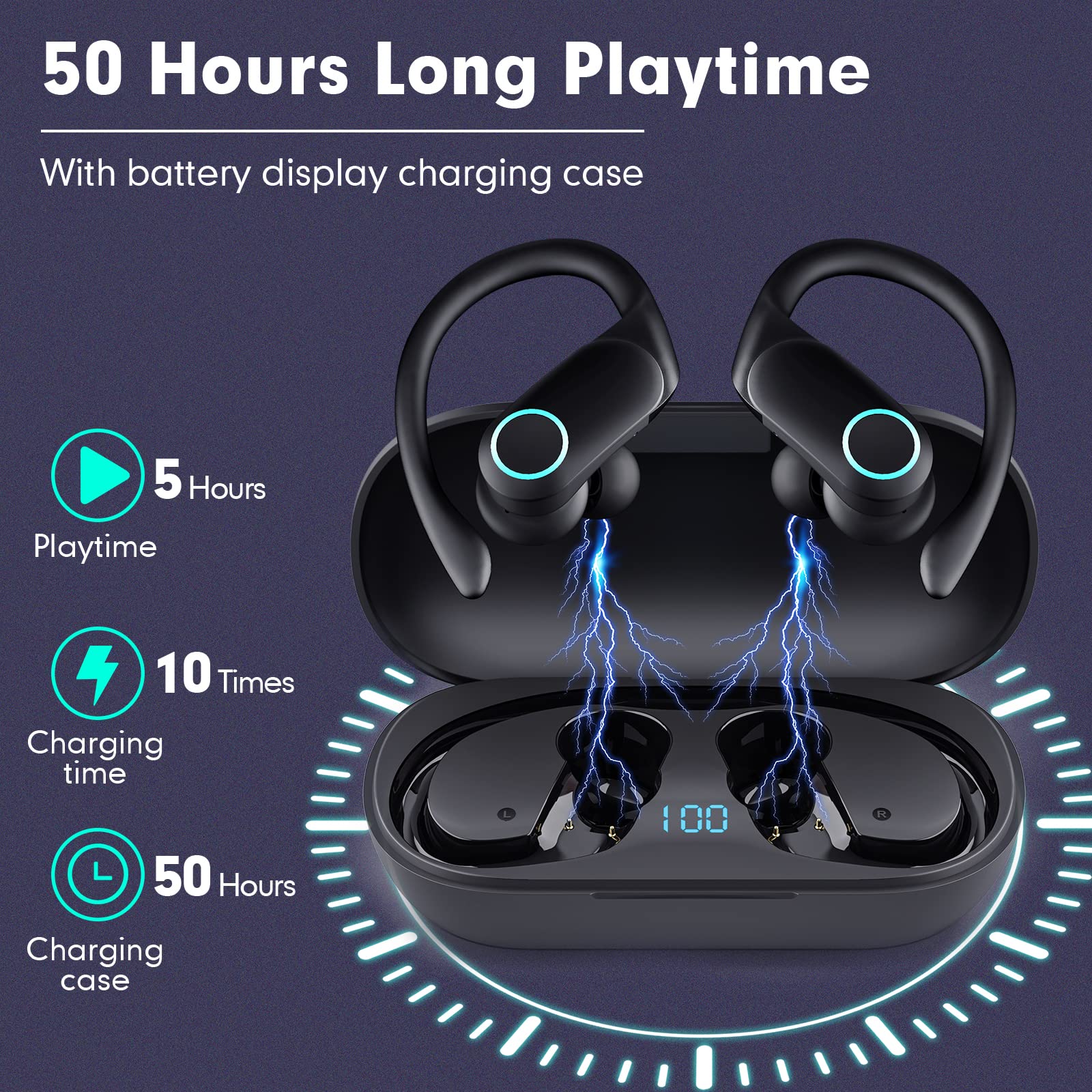 Amazon Com Wireless Earbuds Hadisala Bluetooth 5 1 Sports Headphones With Mic Ipx7 Waterproof Noise Reduction Led Display In Ear Earphone 50h Playtime With Charging Case For Gym Running Electronics
